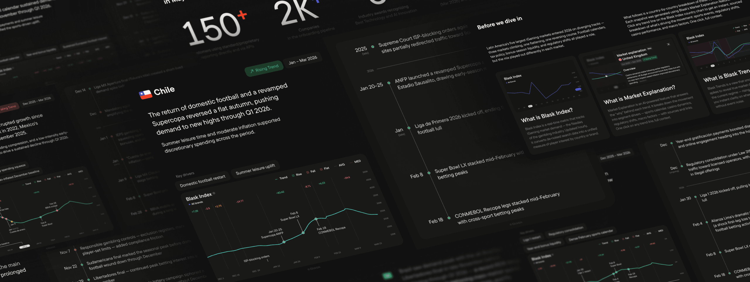 - Superbet invested heavily into a growing market. The operator launched in Brazil in October 2023 and committed to local sports partnerships and marketing. In Q1 2025, its annual Blask Index was 86.5 million — up from virtually nothing in 2024. By Q1 2026, that figure had reached 171.3 million. Its +98% year-over-year growth in Q1 2026 puts it on a trajectory to challenge the top three within the next 12 months.