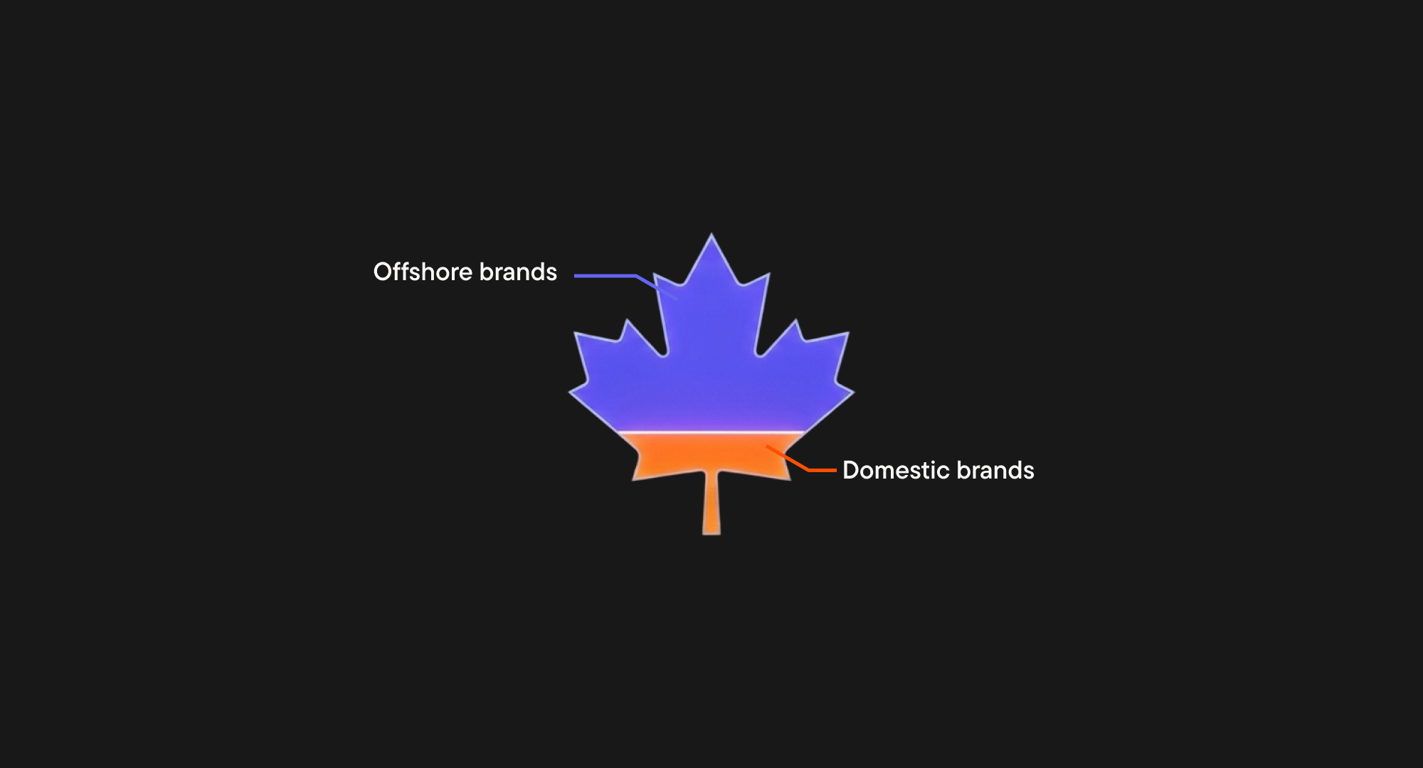 Offshore operators account for the majority of that volume — and the gap is widening. In 2025, offshore CEB grew 40%, against 23% for domestic brands. 230 brands compete for Canadian players. The top two by CEB are Stake and Roobet, both unregulated.
