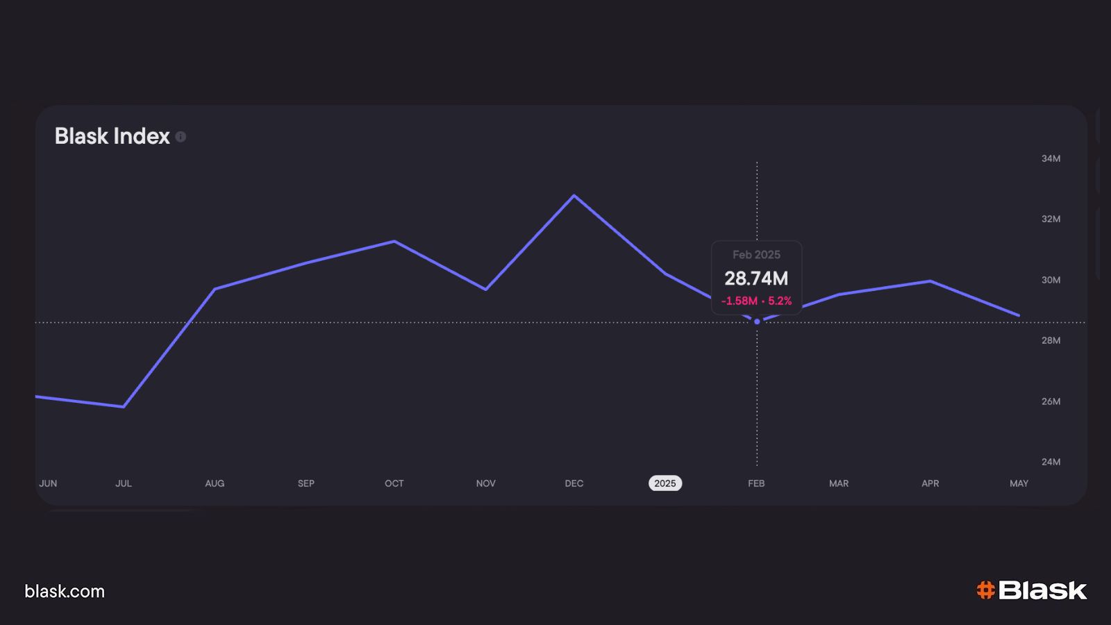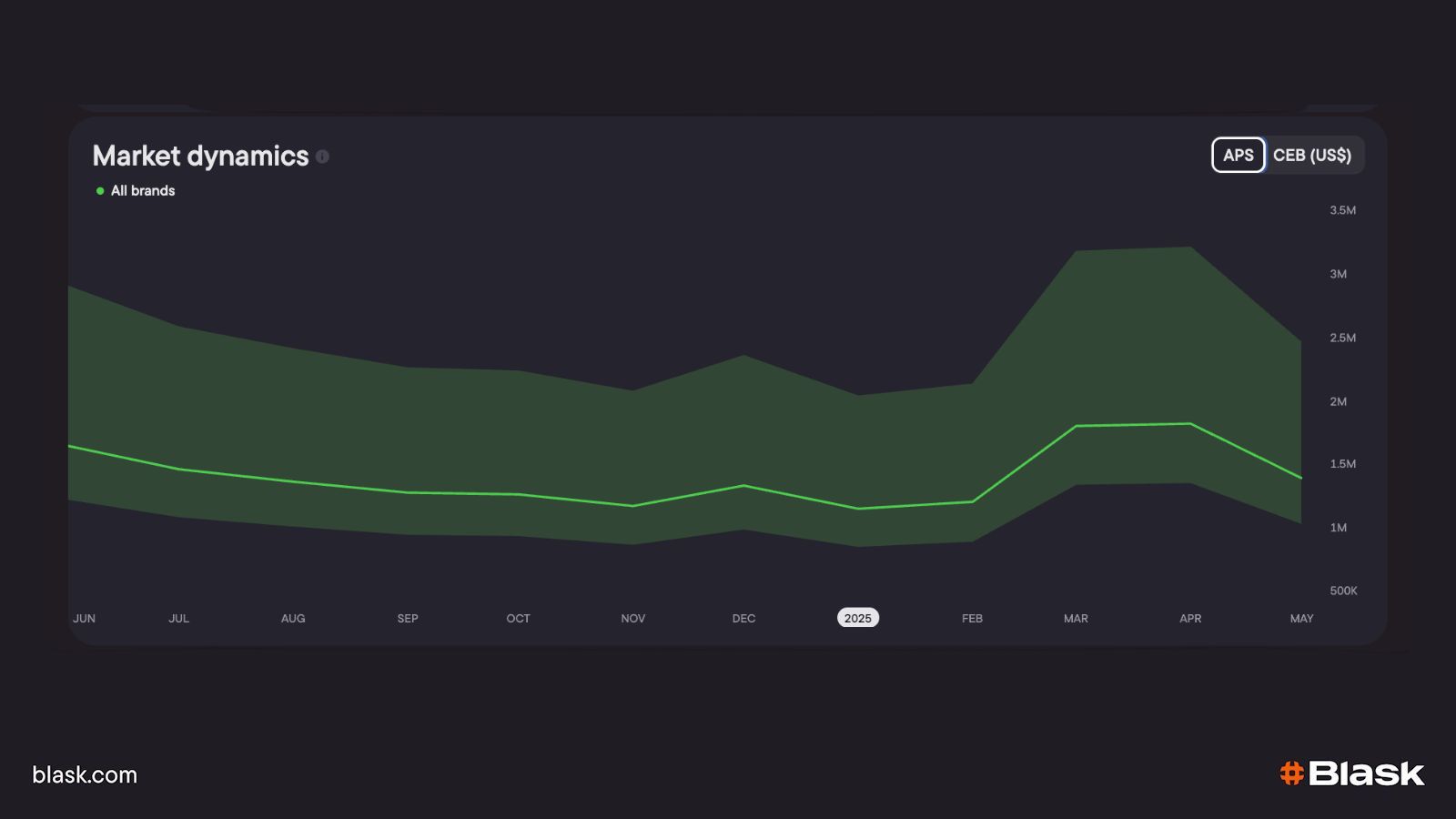 - Demand momentum – Blask Index chart traces search interest for the markets. A rising line means appetite is still expanding; a flat or sagging curve warns that enthusiasm is cooling.